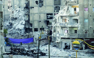 صورة بثها نشطاء تظهر جانباً من الدمار الذي سببه قصف القوات النظامية على حي الخالدية في حمص. رويترز