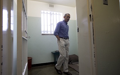وبقي أوباما لدقائق عدة في زنزانة السجين السابق، رقم 46664.