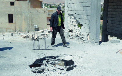آثار سقوط قذيفة من الجانب السوري في الهرمل. أرشيفية