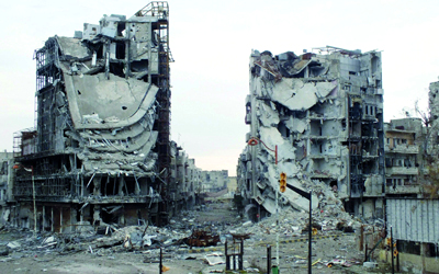 صورة بثها ناشطون تظهر حجم الدمار الناتج عن قصف القوات النظامية على مدينة حمص. رويترز
