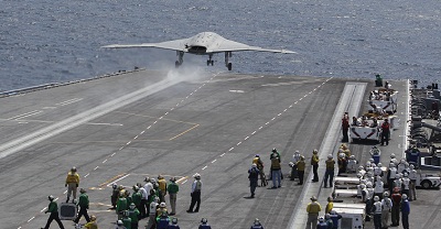 بالصور..أول طائرة بلا طيار تهبط على حاملة طائرات أميركية