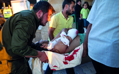 إسعاف أحد المصابين إلى مستشفى خارج سورية. أ.ف.ب
