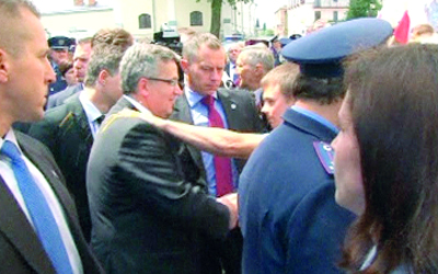 قالت الشرطة إن رجلاً أوكرانياً لطخ الرئيس البولندي برونيسلاف كوموروفسكي، أمس، ببيضة مكسورة، عندما زار موقع مذبحة تعرض لها البولنديون عام 1943 في أوكرانيا المجاورة.
