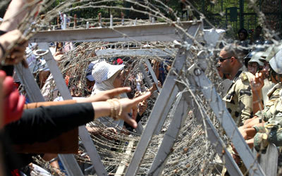 قوات الجيش تغلق الطريق أمام مسيرة لمؤيدي مرسي باتجاه وزارة الدفاع. إي.بي.ايه