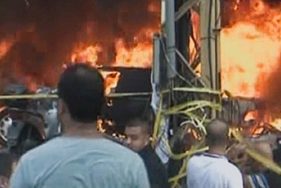 وعرضت قناة المنار التابعة لحزب الله لقطات من مكان التفجير، تظهر حريقا كبيرا مندلعا في عدد من السيارات والمباني المحيطة، في حين عمل رجال الاطفاء على مساعدة السكان على اخلاء منازلهم التي تغطيها اعمدة الدخان.