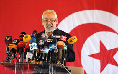 زعيم حركة النهضة راشد الغنوشي خلال مؤتمر صحافي. إي.بي.إيه
