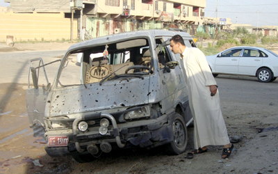 عراقي ينظر في سيارة مفخخة بعد تفجيرها في الدجيل. رويترز