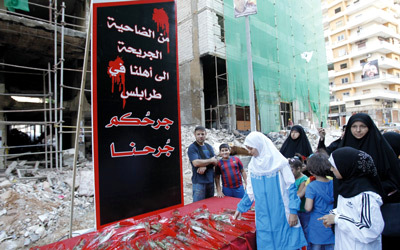 كثف الجيش اللبناني أمس، دورياته في طرابلس، فيما شوهد مسلحون مدنيون أمام المساجد في كبرى مدن شمال لبنان التي شهدت تفجيرين دمويين، أول من أمس، أسفرا عن سقوط 45 قتيلاً بحسب حصيلة جديدة. وأصدر رئيس الحكومة المستقيل، نجيب ميقاتي، مذكرة إدارية «قضت بإعلان الحداد العام طوال أمس، على ارواح الشهداء الذين سقطوا»، وقال إن إسرائيل هي المستفيد الأكبر من التفجيرات، فيما عمدت عائلات عدة إلى تشييع ضحاياها ليلاً بسبب تشوه الجثث التي كان بعضها محترقا. ودان الامين العام لمجلس التعاون الخليجي، عبداللطيف الزياني، الهجوم المزدوج «الارهابي» الذي استهدف مدينة طرابلس في شمال لبنان، معتبراً ان هدف هذا الهجوم هو جر لبنان إلى «فتنة طائفية».
