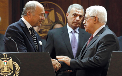 من جهته، أكد فابيوس دعم فرنسا للمفاوضات، معتبرا أنه «يتعين علينا أن نذهب نحو السلام، ومنح الشعب الفلسطيني العدالة، لكي يعيش بسلام وأمن إلى جانب إسرائيل في دولتين مجاورتين». وشدد على أن القضية الفلسطينية تبقى «جوهر الموضوع وفي صميم المنطقة»، رغم ما تشهده من «تطورات قوية، وأحيانا عنيفة» في سورية ولبنان ومصر، مؤكدا ضرورة الحل السلمي. وبشأن موقف بلاده من الاستيطان الإسرائيلي، قال «موقفنا متفق مع القانون الدولي، وحسب القانون الاستيطان غير شرعي، وفرنسا تمتثل للشرعية الدولية».