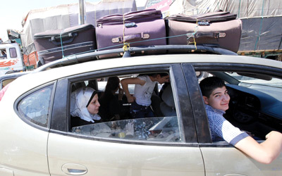 لاجئون سوريون في طريقهم إلى لبنان. أ.ف.ب