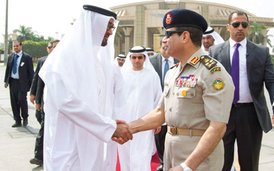 وكان سمو الشيخ محمد بن زايد آل نهيان التقى خلال الزيارة الرئيس المؤقت لمصر، المستشار عدلي منصور، ورئيس مجلس الوزراء، الدكتور حازم الببلاوي، والفريق أول عبدالفتاح السيسي، وعدداً من كبار المسؤولين المصريين.