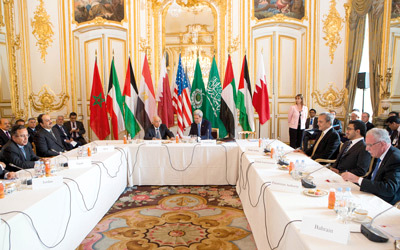 وناقش الاجتماع الذي حضره جون كيري، وزير خارجية الولايات المتحدة الأميركية، مستجدات المفاوضات الجارية بين الطرفين الفلسطيني والإسرائيلي، وتقييم تطور المفاوضات، وبحث أفضل سبل تقديم الدعم اللازم لإنجاحها. ويعقد الاجتماع بناءً على طلب من وزير الخارجية الأميركي لاطلاع الوفد الوزاري العربي على نتائج المفاوضات الأربع التي أجراها، واستكمالاً لاجتماعات متابعة نتائج المفاوضات الفلسطينية.