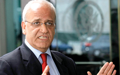 وأضاف عريقات «أوضحنا هذه المواقف للإدارة الأميركية وروسيا، والأمم المتحدة، والاتحاد الأوروبي، والأشقاء العرب، وبقية دول العالم». وشدد على أن «الحجة الإسرائيلية بأن ما يسمى الكتل الاستيطانية سوف تكون جزءاً من إسرائيل في أي حل نهائي، يعتبر عذراً أقبح من ذنب، لأن هذا يعني الإملاءات وليس المفاوضات». واستؤنفت مفاوضات السلام بين الفلسطينيين وإسرائيل نهاية يوليو الماضي، بعد أكثر من ثلاثة أعوام على توقفها، وذلك بفضل وساطة قادها وزير الخارجية الأميركي، جون كيري، لأشهر عدة.