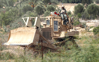 جندي يجلس أعلى جرافة عسكرية بجوار الحدود مع قطاع غزة. رويترز
