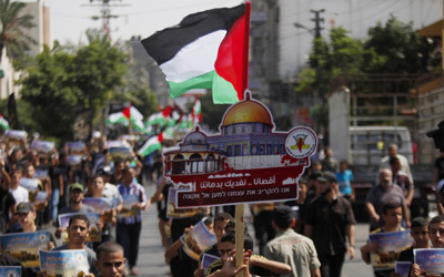 وفي غزة تظاهر عشرات من أنصار حركة الجهاد الإسلامي في المدينة تنديداً بدخول جماعات استيطانية للمسجد الأقصى في القدس ورفضاً لمفاوضات السلام مع إسرائيل. وانطلقت التظاهرة من المسجد العمري الكبير في غزة تحت عنوان «القدس نحميها معاً ونحررها معاً»، ورفع المشاركون فيها لافتات تندد بالسياسات الإسرائيلية ضد القدس وأخرى تطالب بوقف التفاوض. وشارك في التظاهرة مسلحون ملثمون من عناصر «سرايا القدس» الجناح العسكري للجهاد الإسلامي. في غضون ذلك، أطلق نشطاء فلسطينيون ومجموعات شبابية حملة إلكترونية لمعارضة المفاوضات مع إسرائيل بمشاركة عشرات الصفحات الفلسطينية على مواقع التواصل الاجتماعي.