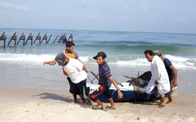 صيادون فلسطينيون عند شاطئ رفح. رويترز