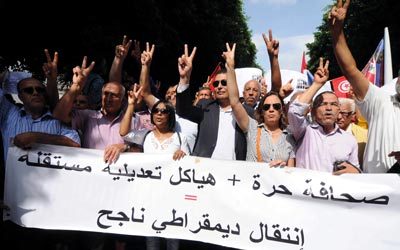 وردد المتظاهرون شعارات مثل «الحرية الحرية للصحافة التونسية» و«إعلام حر.. قضاء مستقل» و«سلطة رابعة وليست تابعة».