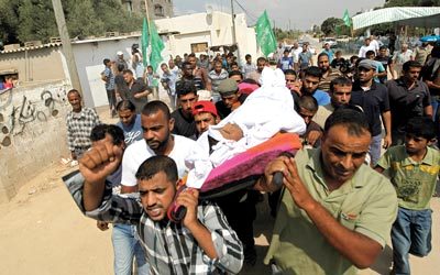مسيرة غضب خلال تشييع الشهيد وسط غزة. أ.ب