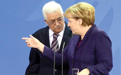 ميركل خلال المؤتمر الصحافي مع عباس. أ.ف.ب