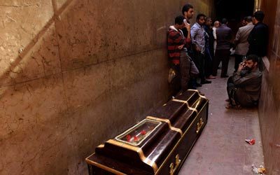 أهالي ضحايا في الهجوم على كنيسة بمنطقة الوراق في القاهرة. أ.ب