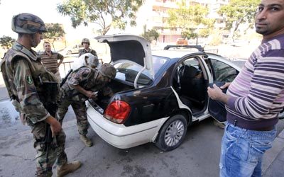 جنود يفتشون سيارة على حاجز في طرابلس. أ.ف.ب