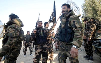 مجموعة من عناصر الجيش الحر حيث اتهم «الائتلاف» الجيش العراقي بمهاجمتهم على الحدود. رويترز