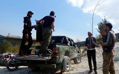 عناصر من الجيش السوري الحر في شمال غرب سورية حيت تدور مواجهات مع قوات النظام. رويترز