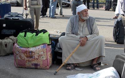 مسنّ فلسطيني عند معبر رفح البري مع قطاع غزة الذي فتح جزئياً بعد إغلاق دام أكثر من أسبوع. أ.ف.ب
