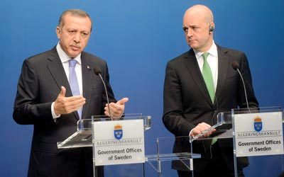 أردوغان خلال مؤتمر صحافي مع رئيس الوزراء السويدي. رويترز