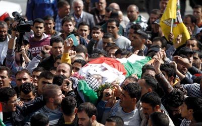 فلسطينيون يشيّعون الشهيد أنس الأطرش في مدينة الخليل بالضفة الغربية. إي.بي.إيه