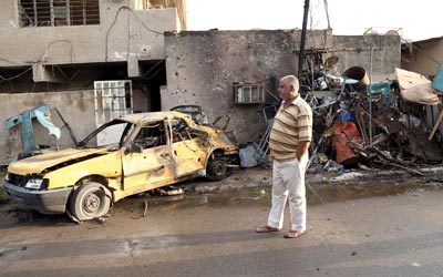 عراقي يمر أمام موقع تعرض لتفجـير في بغداد. أ.ب