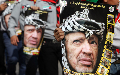 أطفال يرفعون صور عرفات في ذكرى وفاته. أ.ف.ب