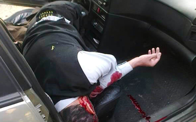 الشيخ سعد الدين غية مقتولاً في سيارته بطرابلس. أ.ب
