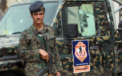 جندي يمني يراقب خارج إحدى المحاكم في صنعاء. أ.ف.ب