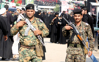 عناصر الأمن العراقي تؤمّن الاحتفالات في كربلاء. رويترز