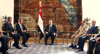 وكان الرئيس المصري المؤقت، المستشار عدلي منصور، استقبل أمس، وزيري الدفاع والخارجية الروسيين، سيرغي شويغو وسيرغي لافروف.