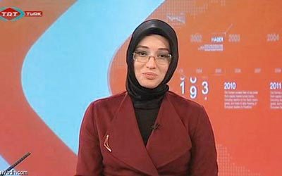 المذيعة المحجبة كما ظهرت على التلفزيون التركي الرسمي. أرشيفية