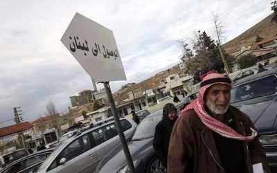 لاجىء سوري في الطريق إلى لبنان هرباً من القتال. أ.ف.ب