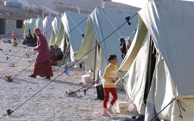 أحد مخيمات اللاجئين السوريين في لبنان بعد أن فروا من القتال. رويترز