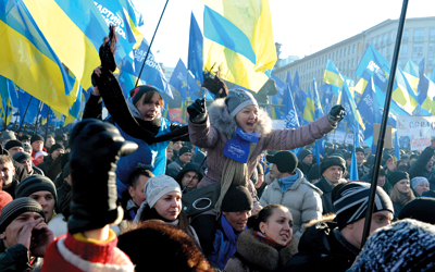 تظاهر نحو 60 ألف شخص السبت في وسط كييف، بحسب الشرطة لدعم الرئيس الأوكراني فيكتور يانوكوفتيش، الذي يواجه منذ اكثر من ثلاثة اسابيع حركة احتجاج غير مسبوقة من المعارضة التي تطالب بالتقارب مع أوروبا.