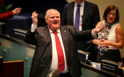 أثارت تصريحات عمدة مدينة تورونتو الكندية، روب فورد، بأنه اقتنى جرعات من الحشيش وتناولها، جدلا واستهجانا واسعين عند الرأي العام. وقبل أيام فاجأ المسؤول زملاءه بمقر الاجتماعات الرسمية في مجلس المدينة، وقام ليؤدي رقصات غريبة، كأن فورد (44 عاما)، لا يخشى على مستقبله السياسي الذي قد ينتهي قريبا، بسبب سلوكه غير المسؤول وتصرفاته الغريبة، ومنها الجري في مبنى البرلمان، والضحك بصوت عالٍ في الأماكن العامة. وخلال احتفال بأعياد رأس السنة في تورونتو، راح عمدة تورونتو يرقص على أنغام المطرب الجامايكي بوب مارلي. ولقي الاستعراض استحسان بعض زملاء فورد، إلا أن آخرين عبروا عن غضبهم ودهشتهم من تصرفاته، في حين غادر البعض القاعة. وجاء ذلك بعد أن تناقلت مواقع على الإنترنت صورا للمسؤول، وهو يرقص بشكل غريب بالقرب من كنيسة في المدينة. وبدا فورد سعيدا أثناء الرقص هذه المرة، وقد نسي المواقف المحرجة التي أوقعه فيه بعض الصحافيين، بسبب عادات فورد في ما يخص تناول الكحول، والأسباب التي دفعته إلى تعاطي المخدرات في السابق. يذكر أن شعبيته تراجعت إثر تسرب مقطع فيديو، يظهر تناوله للحشيش. واعتذر فورد عن ما بدر منه، رافضا دعوات له بالاستقالة. وكان مجلس المدينة صوت بالأغلبية لمصلحة اقتراحين بتقييد صلاحيات عمدة المدينة، وتفويض صلاحيات العمدة المتعلقة بحالات الطوارئ إلى نائبه. وبموجب قانون ولاية أونتاريو، لا يحق للمجلس عزل عمدة مدينة، إلا إذا دين بجريمة خطيرة.