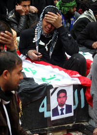 تشييع أحد قتلى التفجيرات في بغداد. أ.ف.ب