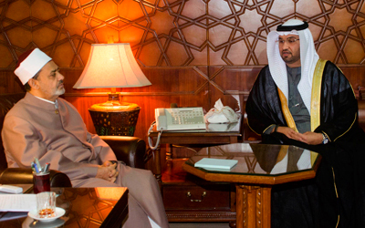 الجابر خلال لقائه شيخ الأزهر في القاهرة. وام