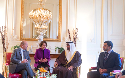 التقى الفريق أول سمو الشيخ محمد بن زايد آل نهيان، ولي عهد أبوظبي نائب القائد الأعلى للقوات المسلحة، أمس، في مقر وزارة الدفاع، في العاصمة الفرنسية باريس، وزير الدفاع الفرنسي، جان إيفلو دريان، حيث بحثا أوجه التعاون بين البلدين، خصوصاً في ما يتعلق بالشؤون العسكرية والدفاعية.