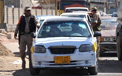 الجيش اليمني يقوم بعمليات تفتيش على السيارات في إحدى النقاط. إي.بي.إيه
