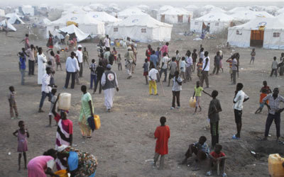 مخيم أقامته «الصليب الأحمر» للنازحين في جنوب السودان نتيجة المعارك الحالية. أ.ف.ب