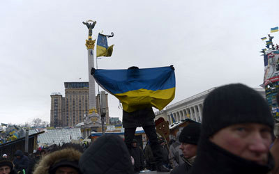 المعارضون في أوكرانيا يواصلون الاحتشاد في وسط كييف رغم التنازلات الحكومية. أ.ف.ب