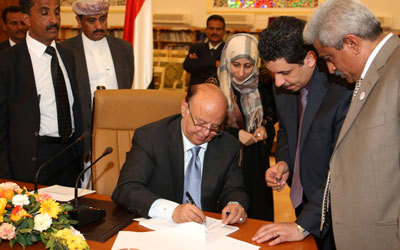هادي يقرّ أقاليم الدولة الاتحادية الجديدة أمس. رويترز