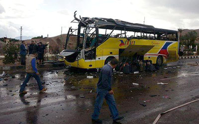 مقتل 4 بتفجير حافلة سياحية تقل كوريين قرب طابا