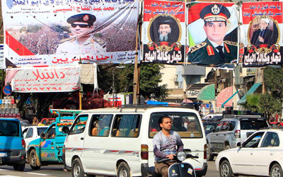لافتات مؤيدة للسيسي وشيخ الأزهر وبابا الكنيسة في قلب القاهرة. رويترز